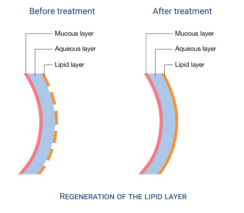 The stimulation leads to the Meibomian glands returning to their normal function in a very short time (a couple of hours) following the treatment.
