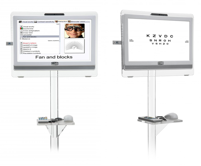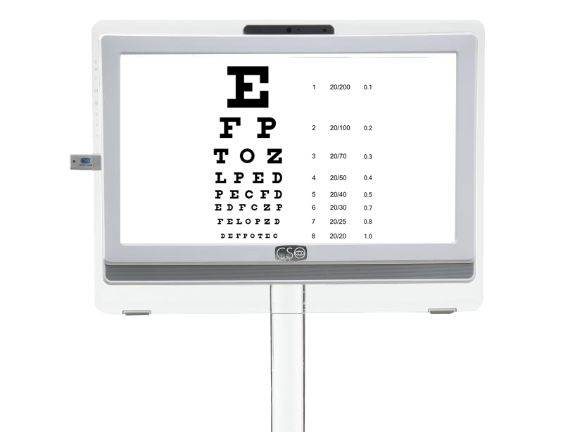 Looking for a sullen chart, generic vision chart, eye test chart for driving license, visual acuity test, eye prescription chart, Jaeger chart, near vision chart, double vision test chart, LogMAR chart, Snellen chart, Pelli Robson chart, DMV eye chart, myopia degree chart? CSO digital computerized chart has you covered. The system comprises the latest vision charts set by the International standards packed in one modern LCD hardware to be calibrated according to the space requirement of the room.