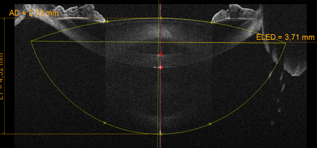 In order to more accurately determine the ELED, and consequently to refine the IOL (intra-ocular lens) calculation, MS-39 provides an acquisition mode to measure the crystalline lens thickness, its distance from the cornea and its equator.